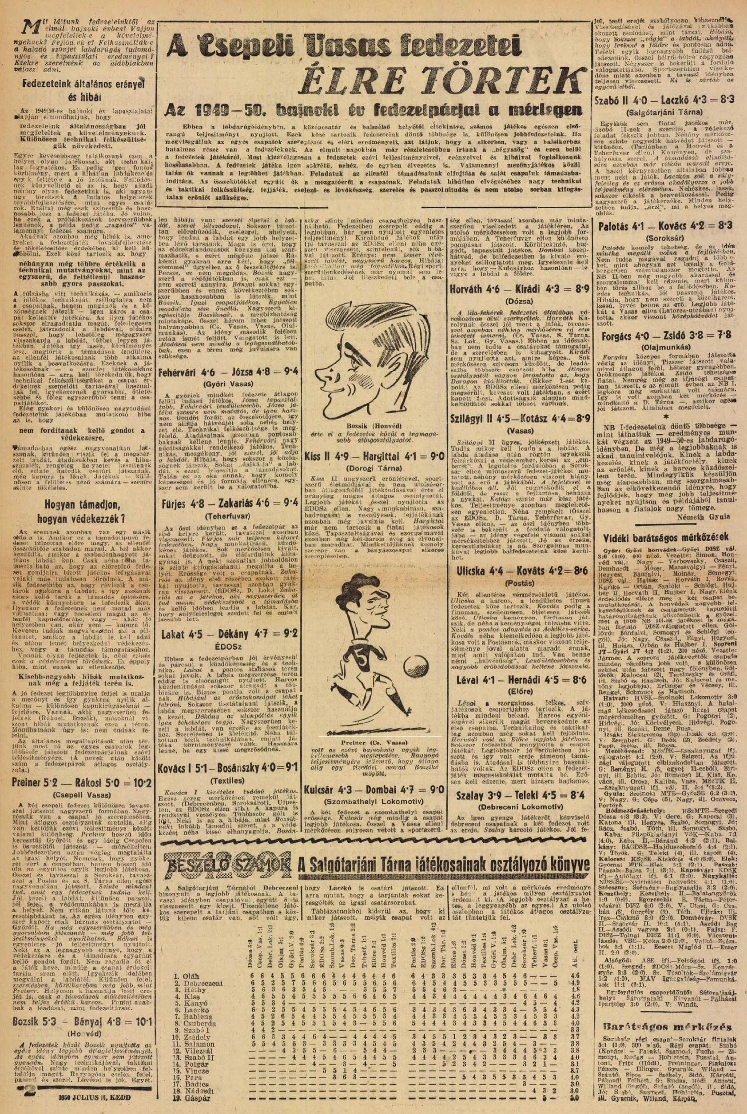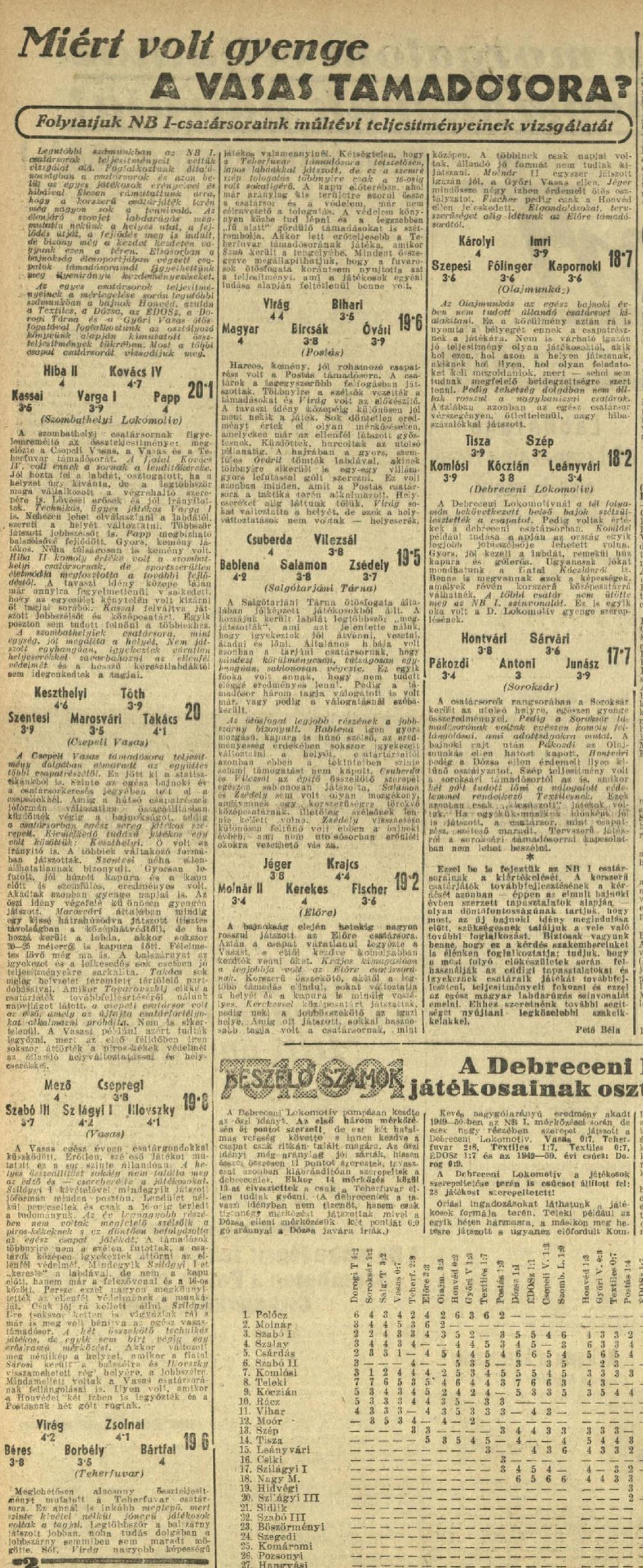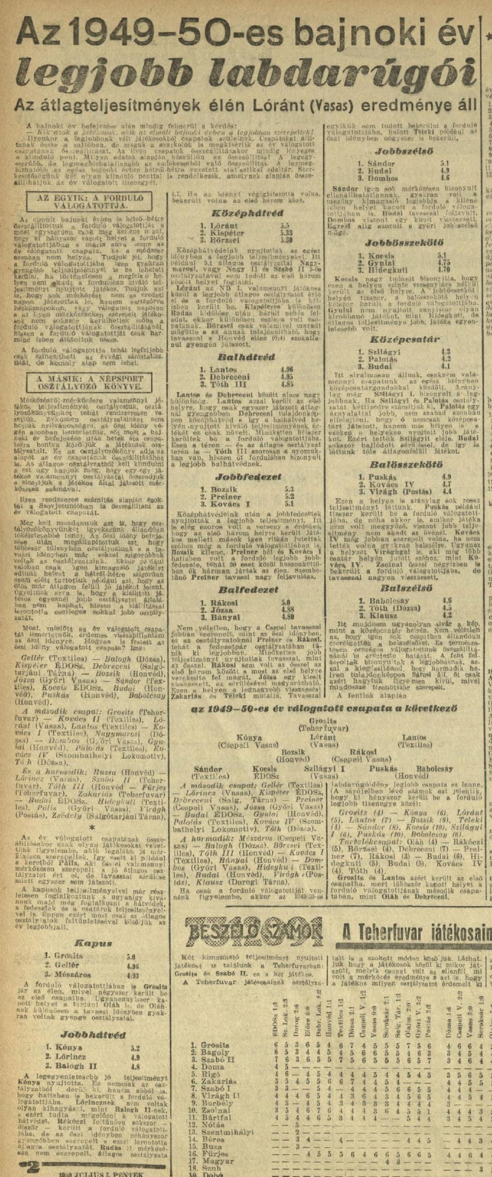 1949/50: Játékosrangsor