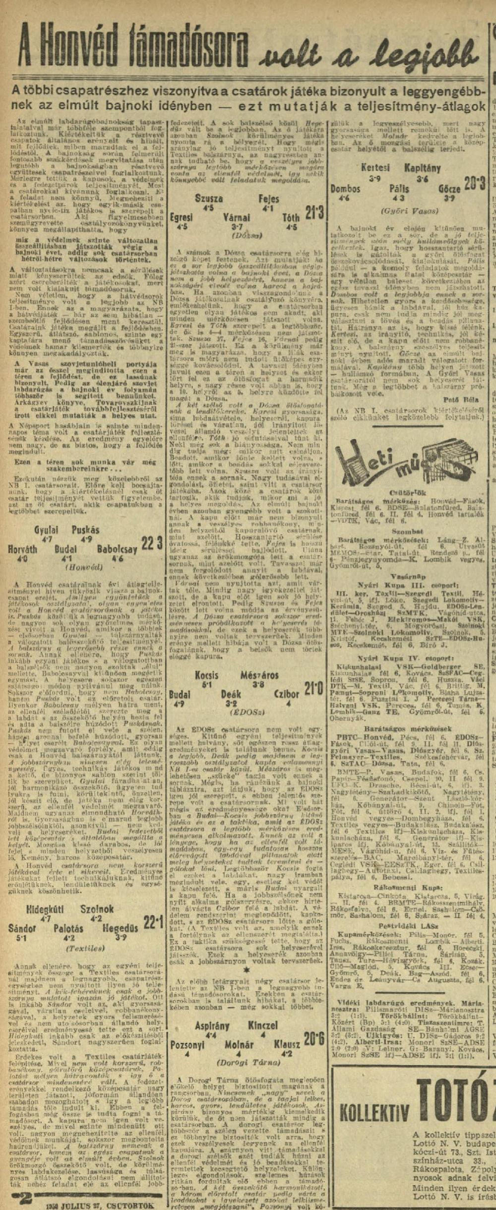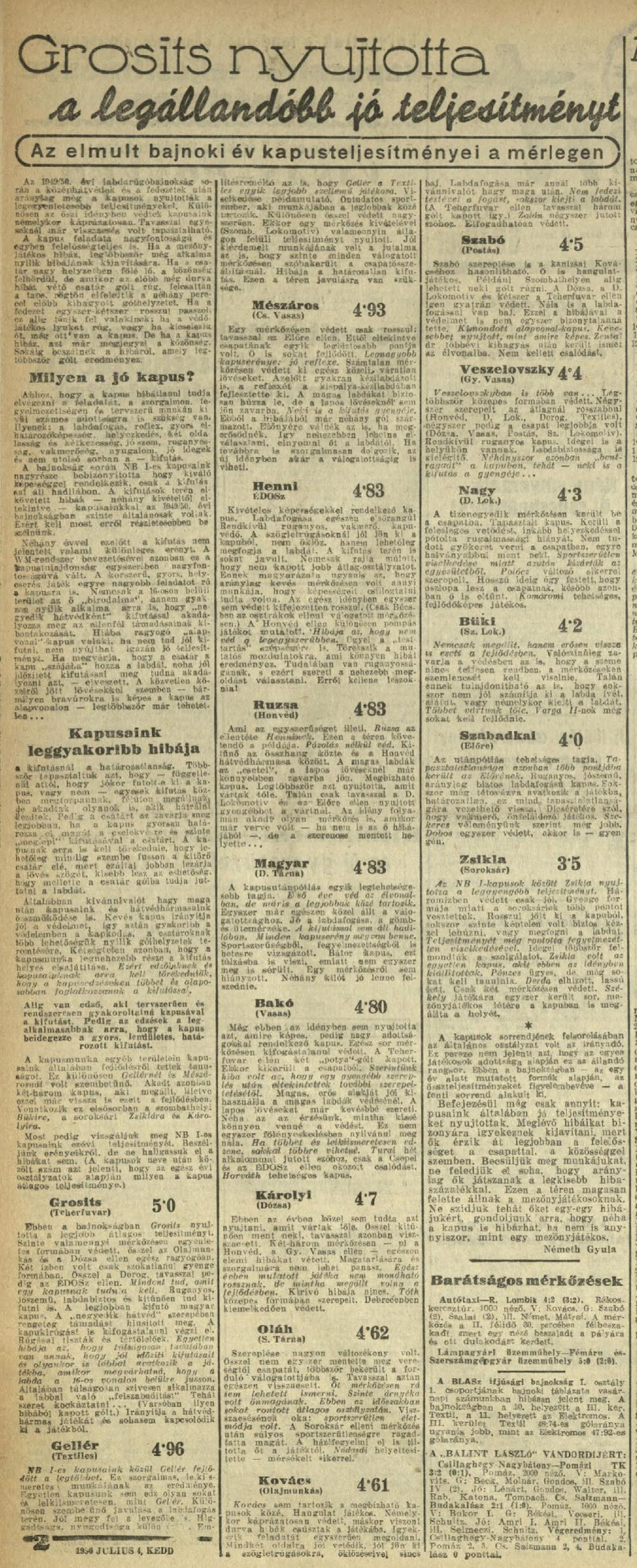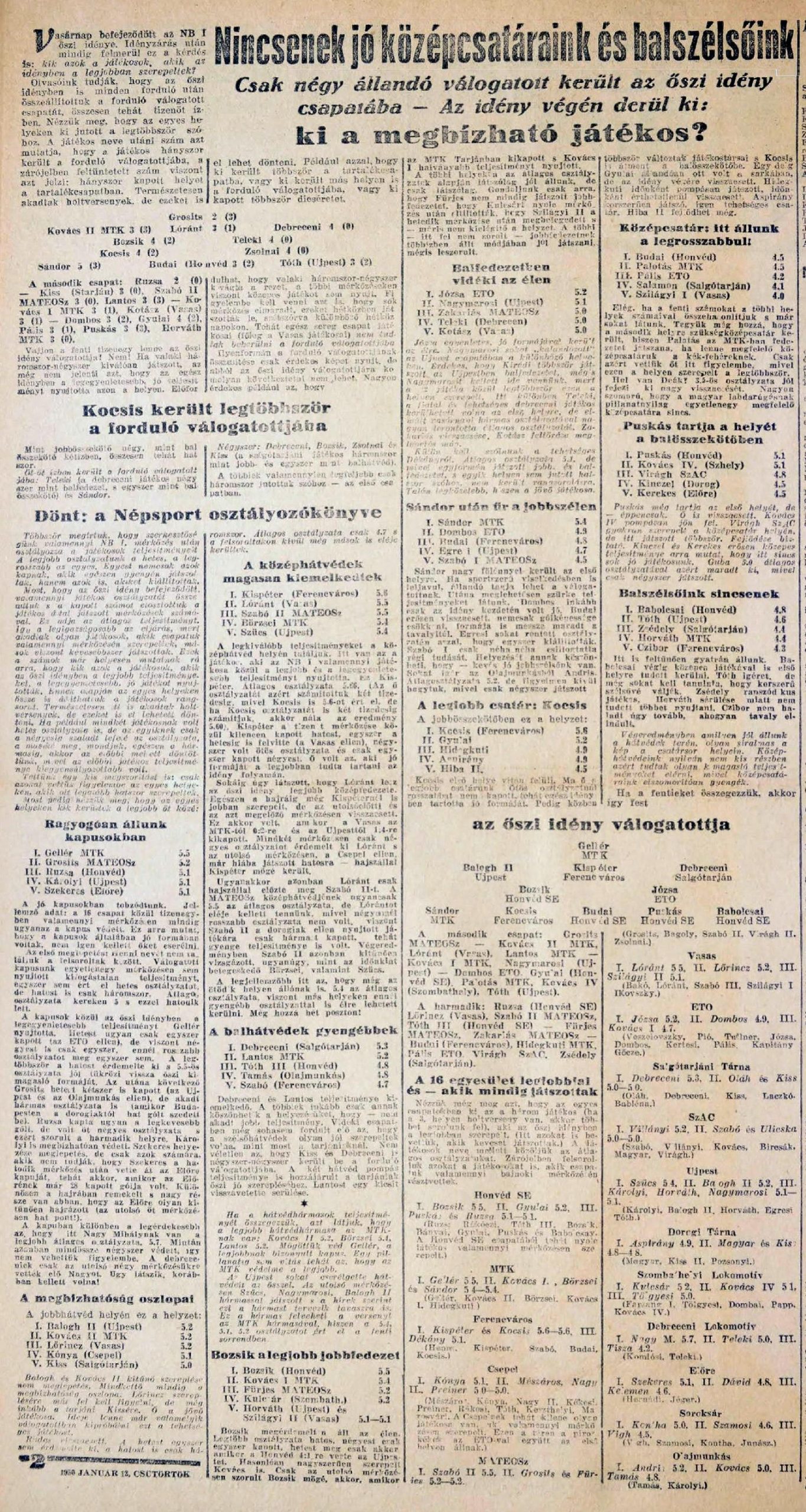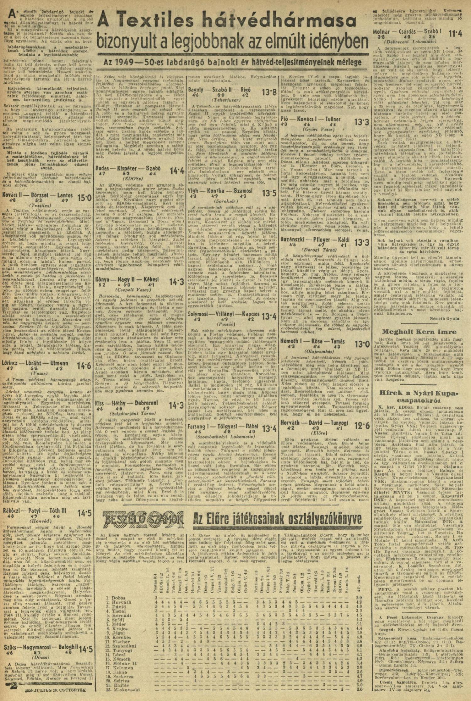 1949/50: Játékosrangsor