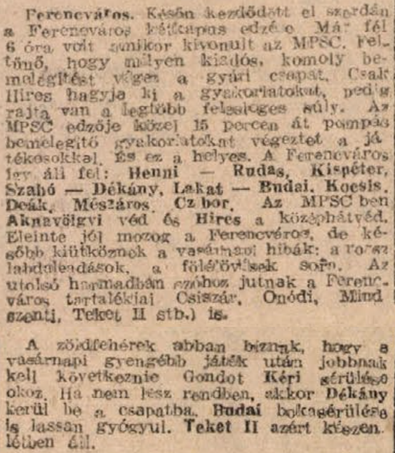 1949.IX.14. Ferencváros – MPSC ?:? (edzőmérkőzés)