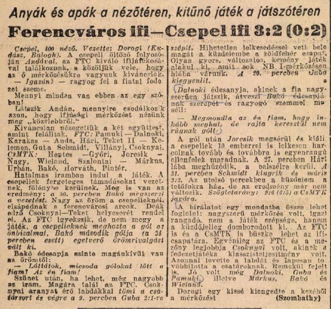 Ferencváros ifi — Csepel ifi 3:2 (0:2)