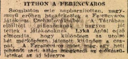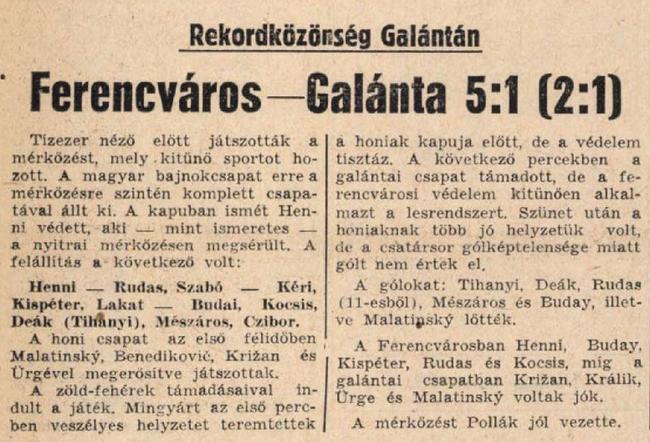 1949.VII.24. Sokol Galánta – Ferencváros 1:5