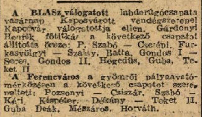 Barátságos, Ferencváros—Gyömrői SE, Gyömrő, fél 6.