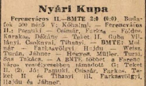 Nyári kupa, BMTE—Ferencváros II., Budafok, fél 6. Kőhalmi F.