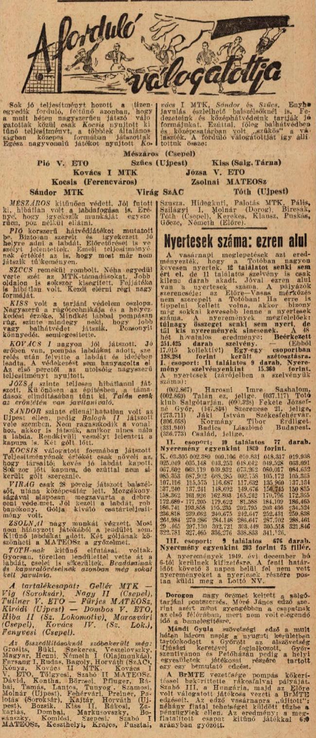 1949.XI.27. V. ETO – Ferencváros 3:1