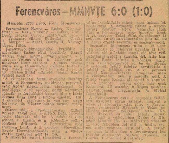 1949.XII.18. MMNVTE – Ferencváros 0:6 (edzőmérkőzés)