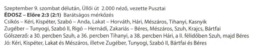 1950.IX.9. ÉDOSZ – Előre 2:3 (edzőmérkőzés) Közzétéve: 2009. február 19. csütörtök | Szerző: K@rcsi Rózsaligeti László: A Fradi piros fehérben Egy hozzászólás a(z) 11110011110ejegyzéshez admin on 2024. szeptember 26. csütörtök - 12:59 ÉDOSZ—Előre barátságos labdarúgó mérkőzés lesz szombaton délután 4 órakor az üllői úti sporttelepen. Kis Újság, 1950. szeptember 9. Vélemény, hozzászólás? Válasz megszakításaAz e-mail címet nem tesszük közzé. A kötelező mezőket * karakterrel jelöltük Hozzászólás * Név * E-mail cím * Honlap Δ