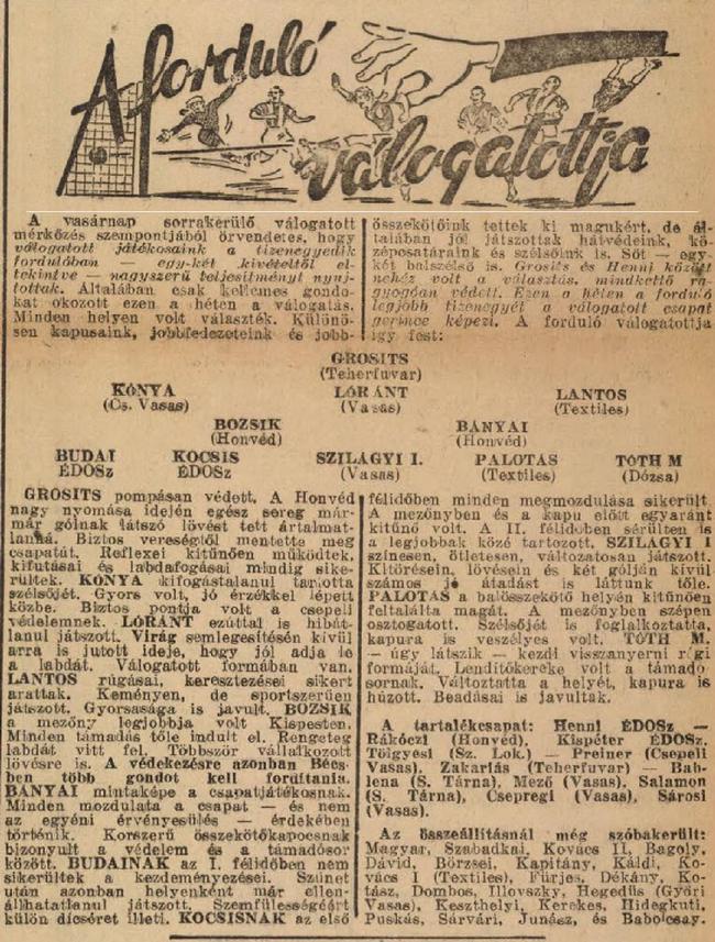 1950.V.7. Csepeli Vasas – ÉDOSZ 1:5 Közzétéve: 2009. február 19. csütörtök | Szerző: K@rcsi Az ÉDOSz támadósora gólratörően játszott, a csepeli csatárok sok helyzetet hagytak ki Vélemény, hozzászólás? Válasz megszakításaAz e-mail címet nem tesszük közzé. A kötelező mezőket * karakterrel jelöltük Hozzászólás * Név * E-mail cím * Honlap Δ