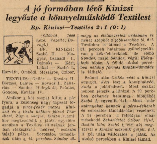 1951.II.18. Bp. Kinizsi – Textiles 2:1 (edzőmérkőzés)