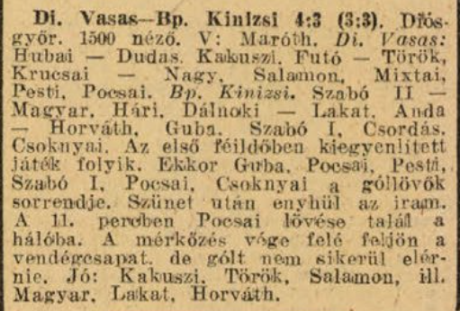1951.V.27. Diósgyőri Vasas – Bp. Kinizsi 4:3 (edzőmérkőzés) Közzétéve: 2009. február 20. péntek | Szerző: K@rcsi Egy hozzászólás a(z) 11110011111ejegyzéshez admin on 2024. október 3. csütörtök - 19:20 A koreai gyermekek megsegítéséért: Di.Vasas—Bp. Kinizsi, Diósgyőr, 5. Népsport, 1951. május 27. Vélemény, hozzászólás? Válasz megszakításaAz e-mail címet nem tesszük közzé. A kötelező mezőket * karakterrel jelöltük Hozzászólás * Név * E-mail cím * Honlap Δ