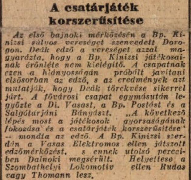 1952.III.19. Bp. Kinizsi – Vasas Elektromos ?:? (edzőmérkőzés)