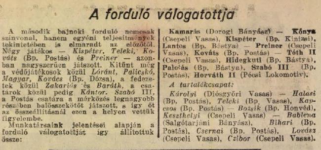 1952.III.2. Bp. Kinizsi – Diósgyőri Vasas 4:0