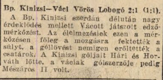 1952.VIII.13. Váci Vörös Lobogó – Bp. Kinizsi 1:2 (edzőmérkőzés)