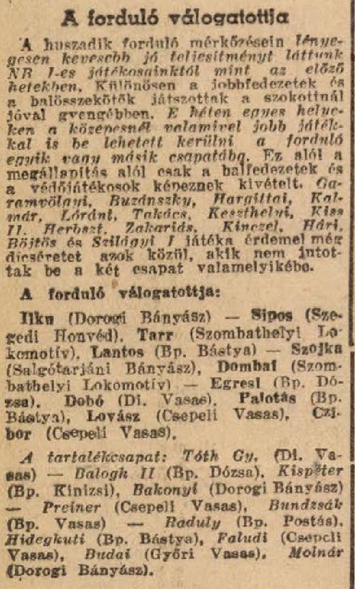 Kategória: 1952 | Címke: 1952, Dorog, Koczó József, NB1, piros lap (emberhátrány), Sós Károly, Sziffert Nándor