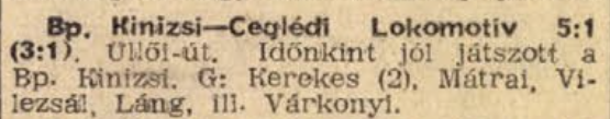 1954.III.3.(?) Bp. Kinizsi – Ceglédi Lokomotív 5:1 (edzőmérkőzés)