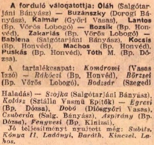 1954.IX.5. Bp. Dózsa – Bp. Kinizsi 4:1 Közzétéve: 2009. február 23. hétfő | Szerző: K@rcsi Egy hozzászólás a(z) 11110100010ejegyzéshez lacimadár on 2014. augusztus 30. szombat - 16:17 Előtte egy héttel vertük a világ akkori 2. legjobb csapatát, az MTK-t (mozgalmi nevén: Vörös lobogót) … utána x az Izzóval, majd sima zakó a Dózsától (!!!) … pont a Dózsától … úgy látszik, akkoriban is volt érthetetlen formaingadozás … Vélemény, hozzászólás? Válasz megszakításaAz e-mail címet nem tesszük közzé. A kötelező mezőket * karakterrel jelöltük Hozzászólás * Név * E-mail cím * Honlap Δ