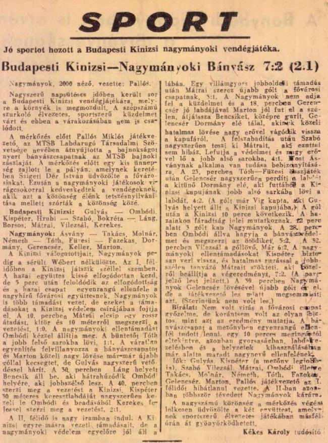 Kategória: 1954 | Címke: 1954, edzőmérkőzés, Nagymányoki Bányász