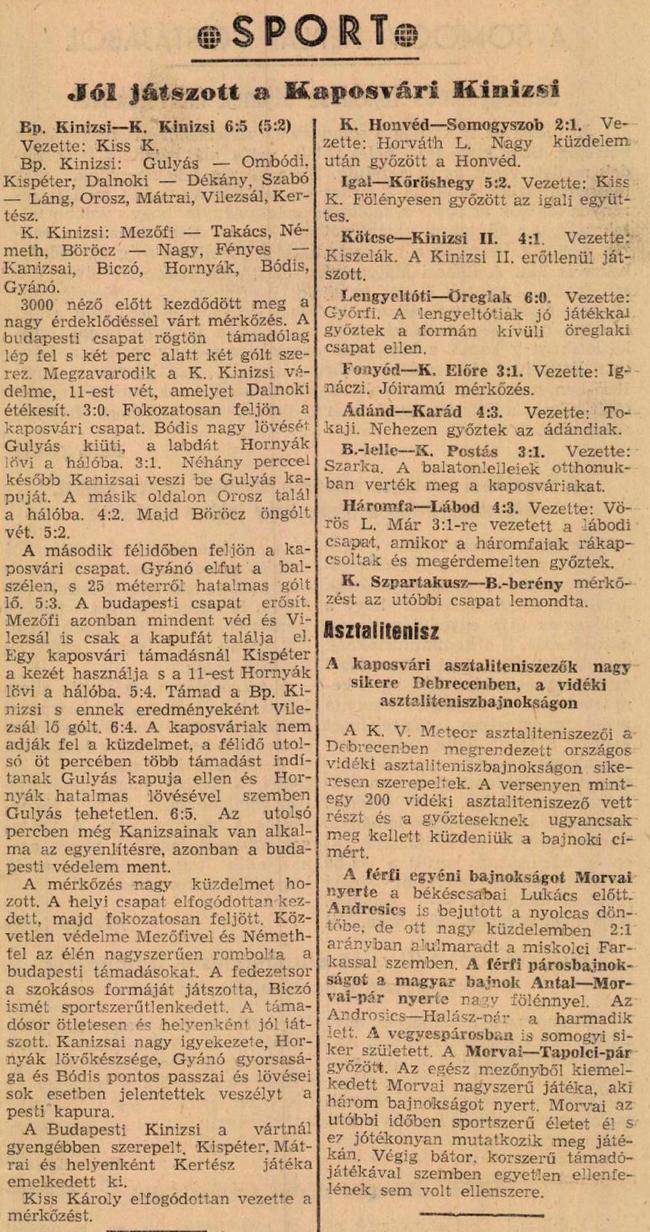 A Kinizsi Sopronban. A Budapesti Kinizsi KB I.-es csapata szeptember utolsó hetében Sopronban játszik barátságos mérkőzést. Ellenfele a Soproni Lokomotív együttese lesz.