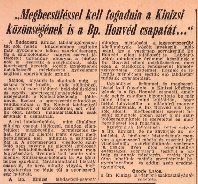1954.XI.7. Bp. Kinizsi – Bp. Honvéd 1:3