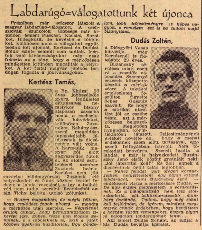 Góllövő: Práda (74.) ill. Kocsis (6.), Czibor (69.), Tichy (84.)