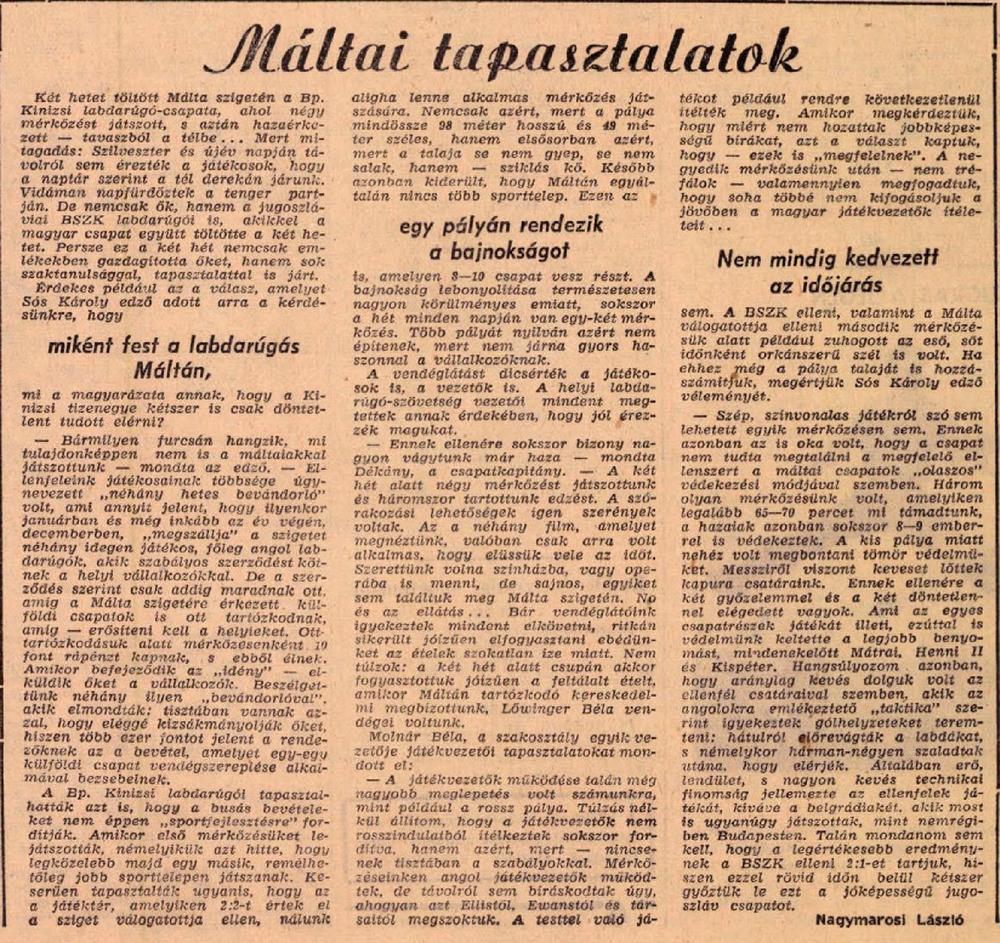 Kategória: 1956 | Címke: 1956, Málta, nemzetközi mérkőzés