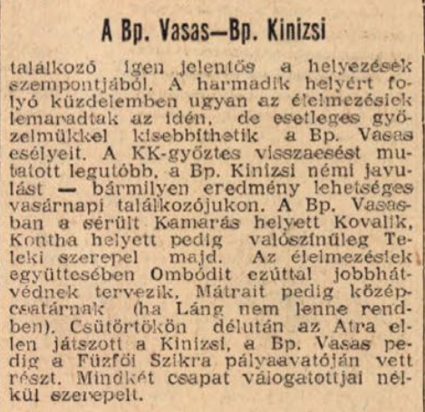 1956.IX.6. Bp. Kinizsi – ATRA ?:? (edzőmérkőzés)