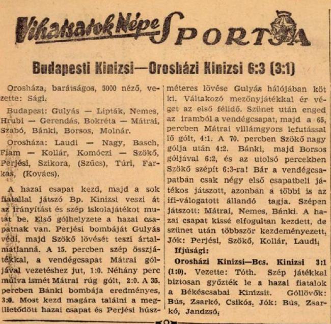 1956.VI.12.(?) Orosházi Kinizsi – Bp. Kinizsi 3:6 (edzőmérkőzés)
