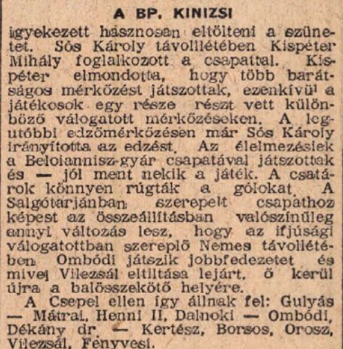 1956.X.17. Bp. Kinizsi – Beloiannisz-gyár ?:? (edzőmérkőzés)
