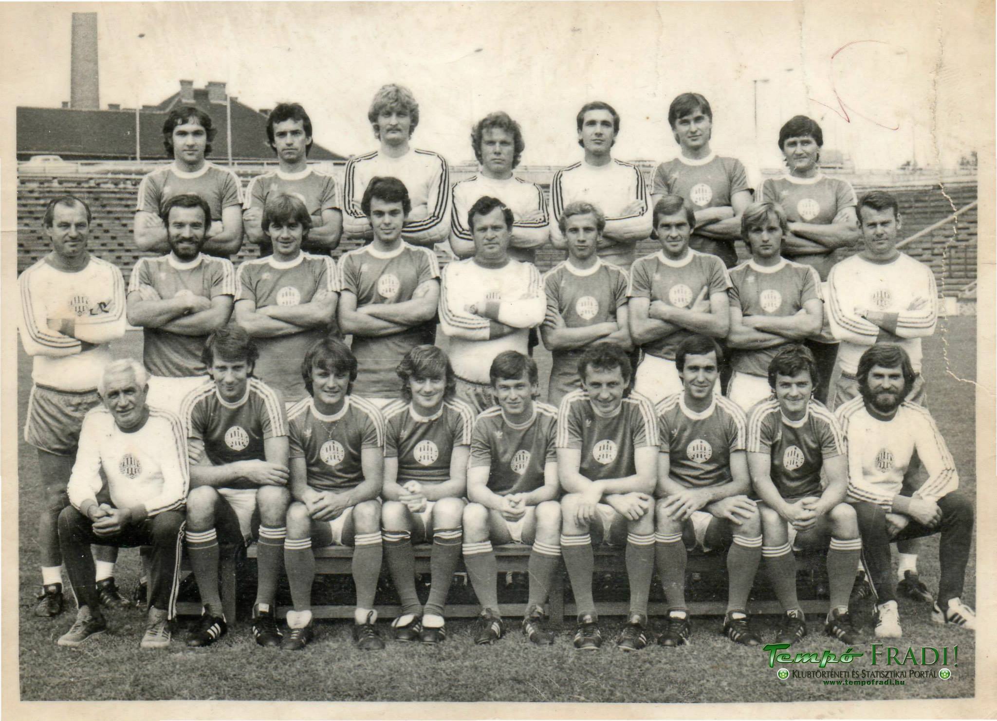 Harmadik sor (balról): Judik, Rab, Zsiborás, Hajdú J., Kakas, Mészöly P., Pusztai. Középen: Monostori Tivadar edző, Ádám, Major, Horváth R., Novák Dezső vezetőedző, Jancsika, Mucha, Murai, Szűcs Lajos edző. Elől: Takács József gyúró, Nyilasi, Szokolai, Ebedli Z., Koch, Szabó Ferenc II., Takács L., Pogány, Bodnár József gyúró