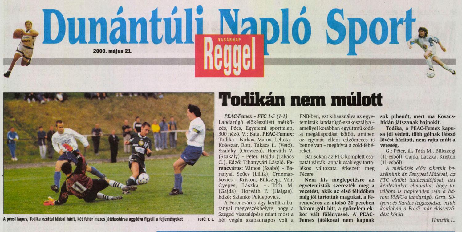 2000.V.20. PEAC – Ferencváros 1-5 (edzőmérkőzés)