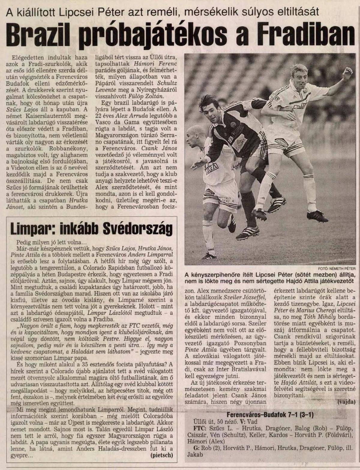 Kategória: 2000/01 | Címke: 2000/01, Arruda Alex Monken, Budafoki MTE, edzőmérkőzés, Schultz Levente