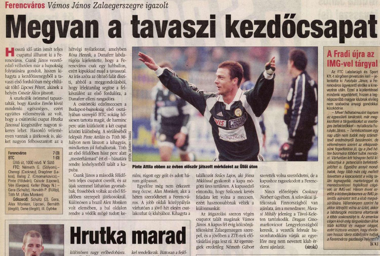 2001.II.15. Ferencváros – BTC: 7-1 (edzőmérkőzés)