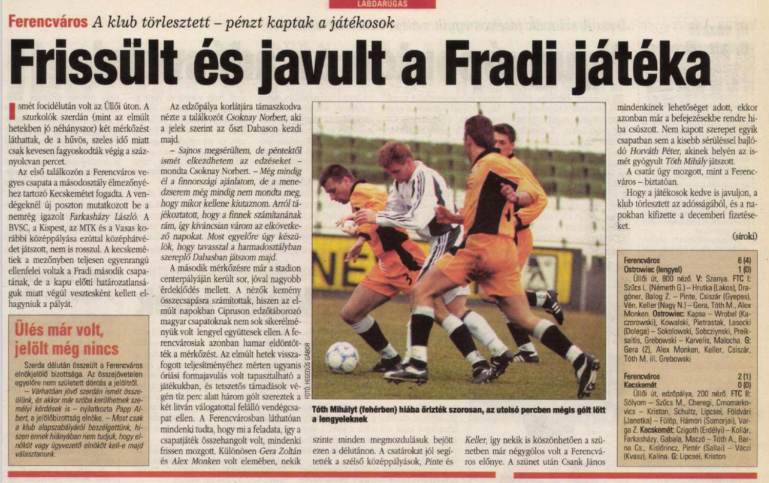 « 2001.II.17. Ferencváros – Dukla Banská Bystrica: 1-1 2001.II.24. Ferencváros – Százhalombatta: 3-1 (edzőmérkőzés) »