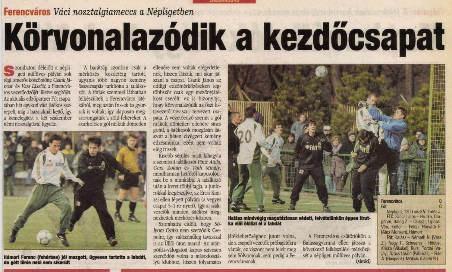 2001.II.3. Ferencváros – Fót: 0-0 (edzőmérkőzés)