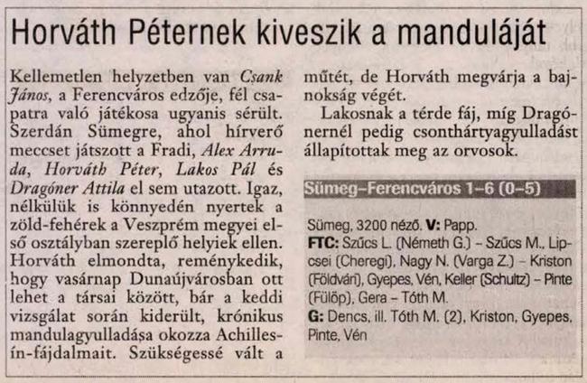 2001.V.16. Sümeg – Ferencváros: 1-6 (edzőmérkőzés)
