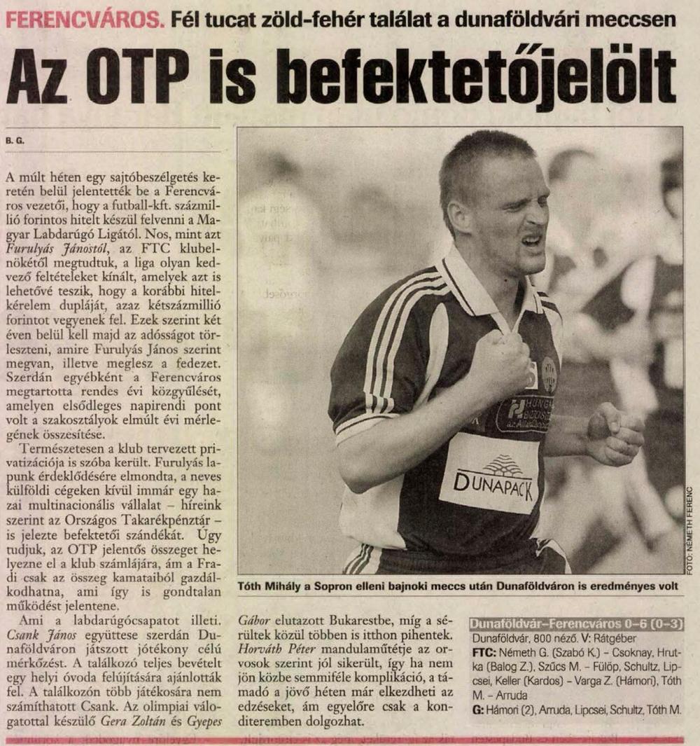 2001.V.30. Dunaföldvár – Ferencváros: 0-6 (edzőmérkőzés)