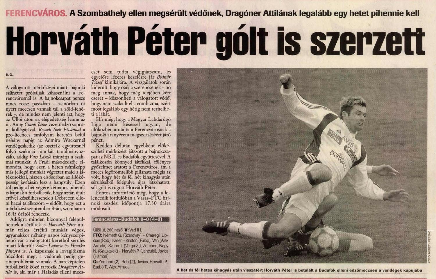 2001.VIII.28. Ferencváros – Budafok: 8-0 (edzőmérkőzés)