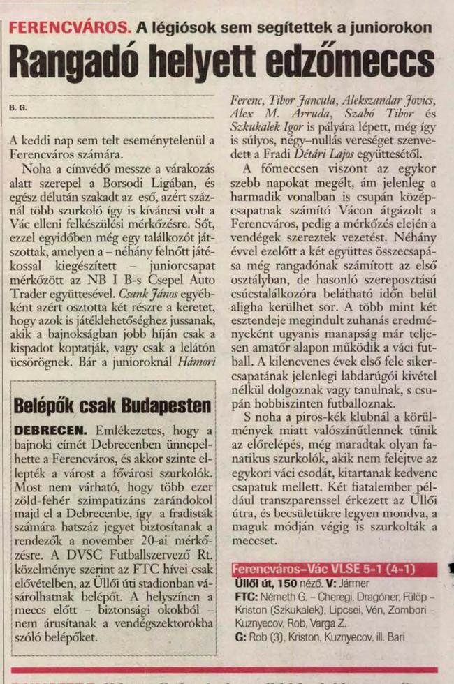 2001.XI.13. Ferencváros – Vác VLSE: 5-1 (edzőmérkőzés)
