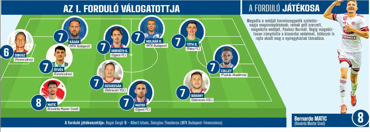 A labdarúgó NB I 1. fordulójában az MTK hazai pályán 1–1-es döntetlent játszott a bajnoki címvédő Ferencvárossal. Kiegyenlített találkozón az első félidő végén a vendégek szereztek vezetést, a második félidő elején a hazaiak egy hatalmas góllal egyenlítettek.