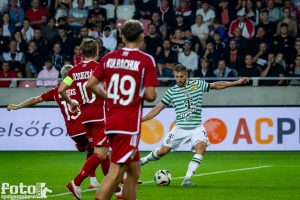 Djokic máris helyzetbe került, 15 méterről, pont szembe a kapuval lőhetett, de nem volt benne elég erő – inkább egy gyenge emelés lett belőle, így Dibusz gond nélkül védett.