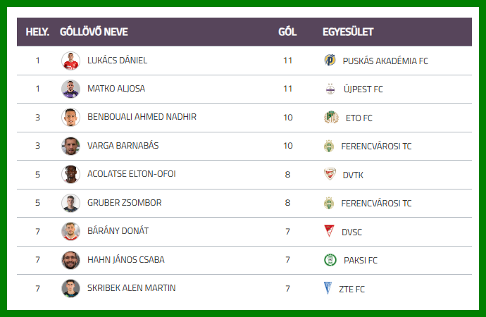 (A Nemzeti Sport, az nso.hu, a Ferencváros és a DVTK hivatalos honlapja, valamint az MLSZ Adatbankja alapján)