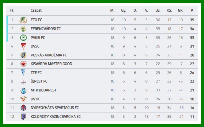 Ami biztos, ha a Győr szombaton hazai pályán (18 órától) nem győzi le a Puskás Akadémiát, a Ferencváros a tabella élén telelhet. 0–1