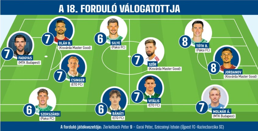 kispad: Bánhegyi, Megyeri G., Jurek, Komlósi, Roguljic, Demeter, Szlifka, Tamás M.