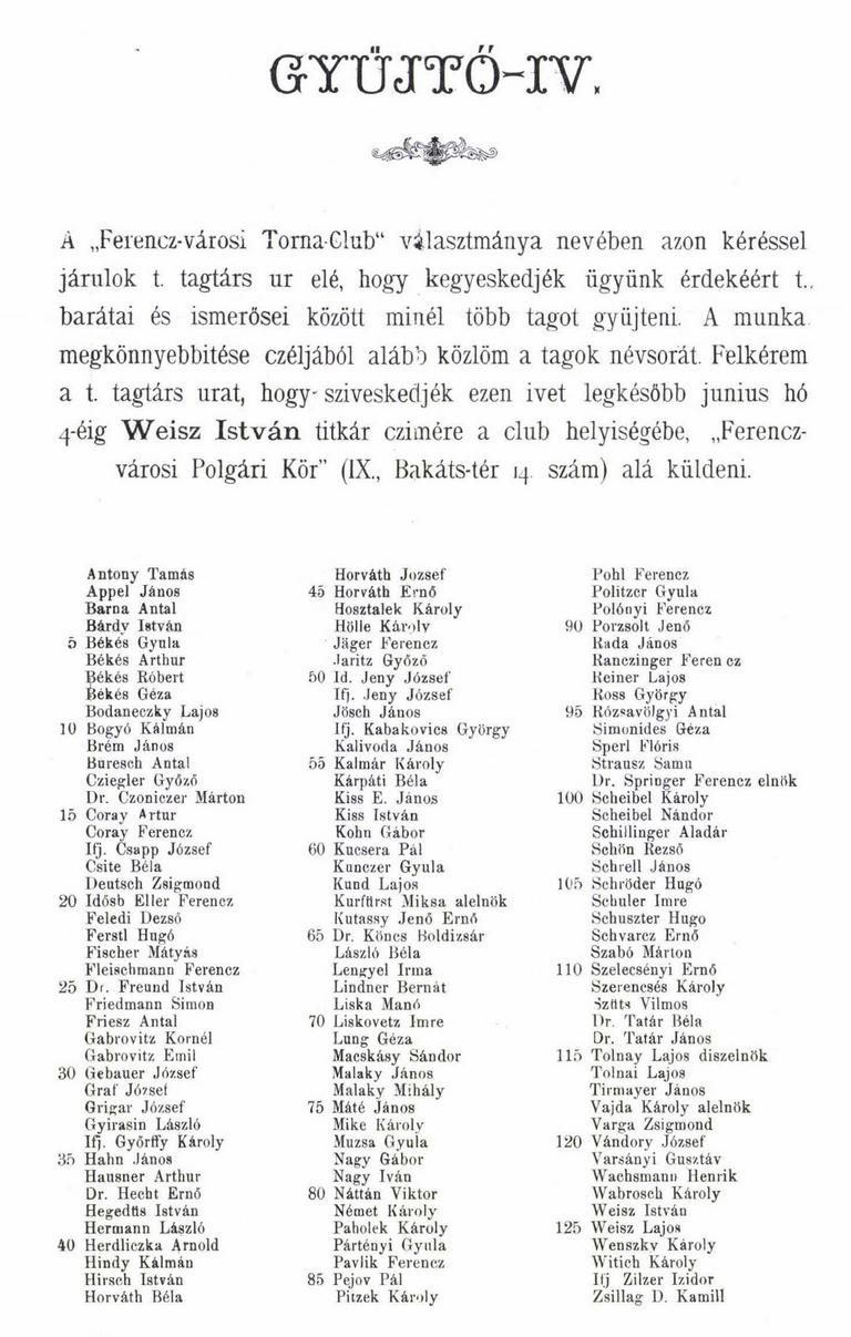 Antony Tamás, Barna Antal, Békés fívérek, Gabrovitz fívérek, Hahn János, Kárpáti Béla, Malaky fívérek, dr. Springer Ferenc, Scheibel, Szabó Márton, Weisz István, Friedmann Simon, Reiner Lajos