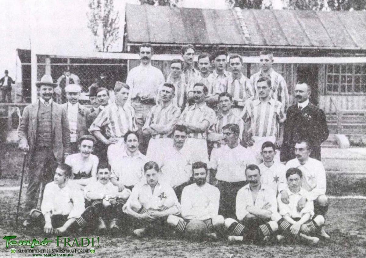 Hátul (balról): Gorszky, Berán, Bródy, Oláh, Lissauer, Manglitz. Előttük: Weisz F., Braun, Pokorny, Kovács G., Borbás, Horváth F. szakosztályvezető civilben