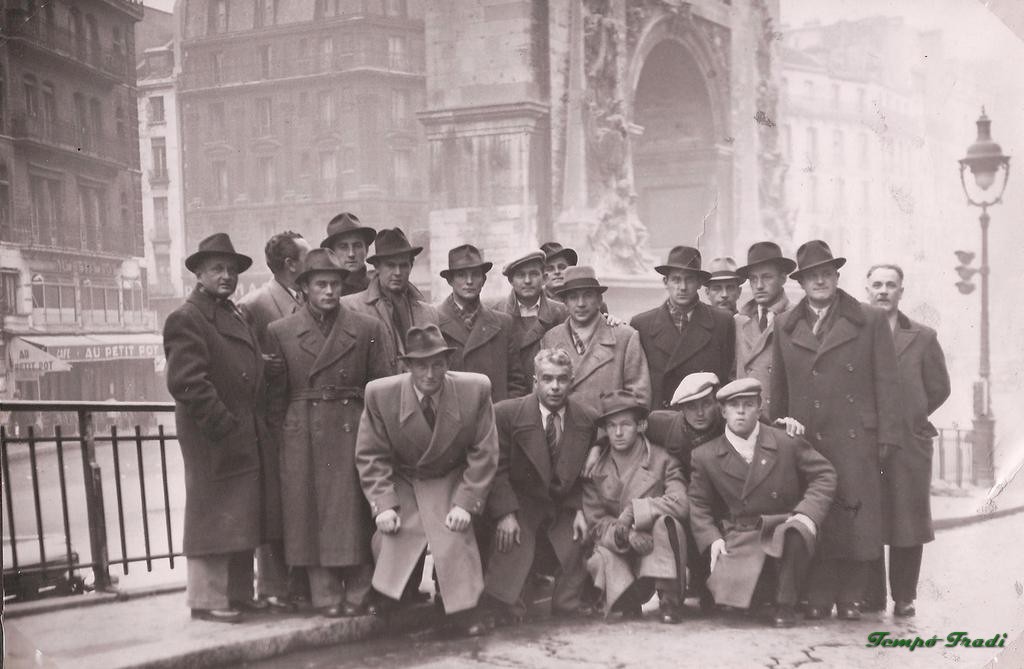 1946.11.24. Egressy, Henni Géza, Szusza, Nagymarosi, Tóth, Horváth, Rudas, Zsengellér, Ónody – kalapos (álló) balról Galovits Tibor