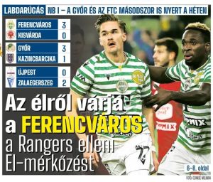 A labdarúgó Európa-liga alapszakaszában a Ferencváros hazai pályán 2–1-re legyőzte a skót Rangerst. Az első félidőben a korábban az NB I-ben is futballozó Bojan Miovszki góljával a vendégek szereztek vezetést, a játékrész utolsó percében Ötvös Bence egyenlített. A második félidőben érkezett a menetrendszerű Varga Barnabás által szerzett fejes gól, amely a Ferencváros győzelmét és egyben továbbjutását eredményezte.