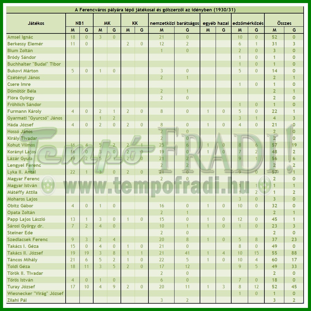 Ferencváros: Amsel – Takács I., Korányi – Lyka II., Furmann, Lázár – Táncos, Takács II., Turay, Szedlacsik, Kohut