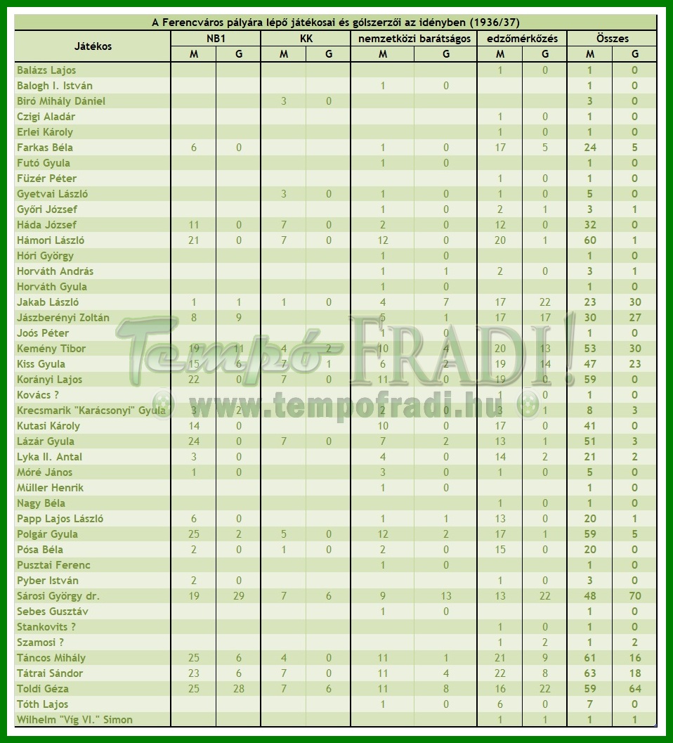 Gólkirály: Cseh II. László (Hungária) 36 gól