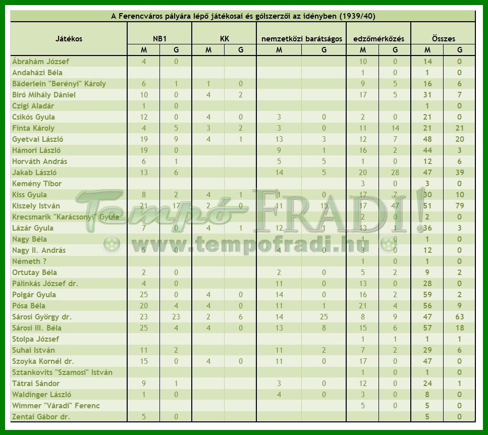 A nem “árja” sportvezetők megfélemlí­tése ellenére mindenki maradt a helyén. Fej-fej mellett küzdött a három “nagy” az utolsó mérkőzésig. A jobb gólarány döntött a Fradi javára. Egészséges intézkedés csak az volt, hogy kötelezték a nagycsapatokat ifjúsági csapatuk felállí­tására.