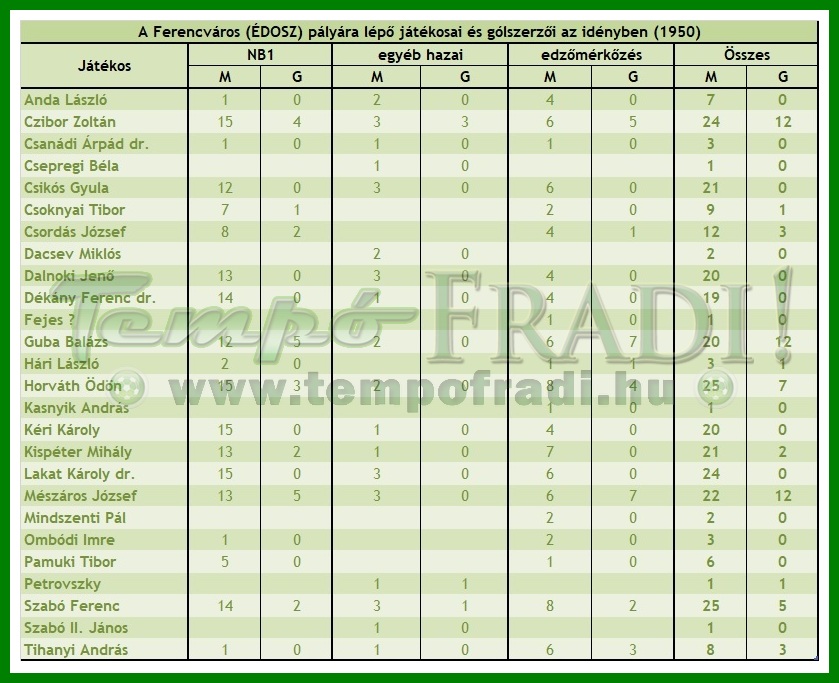 ÉDOSZ: ? – ?, ?, ? – ?, ? – Horváth Ö., Guba, Tihanyi, Mészáros, Czibor